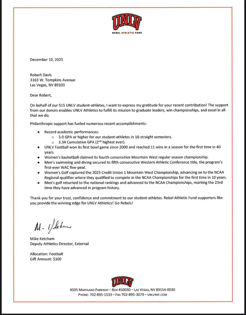 Kelleher Davis Contracting is proud to support the UNLV Athletic Department as a sponsor, demonstrating our commitment to the growth and success of student-athletes both on and off the field. As a leading construction firm with a deep-rooted connection to the Las Vegas community, we are excited to align our brand with UNLV’s dedication to excellence, teamwork, and community engagement. By partnering with the UNLV Athletic Department, we aim to foster an environment where future leaders can thrive, while also investing in the continued development of a vibrant sports culture at UNLV. Together, we will build a stronger, more resilient future for both the university and the greater Las Vegas area.